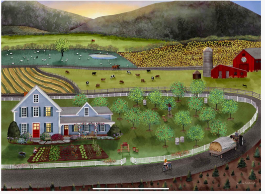 "Morning on the Farm" 13" x 19" matted & framed original print (Wickie Rowland) OL