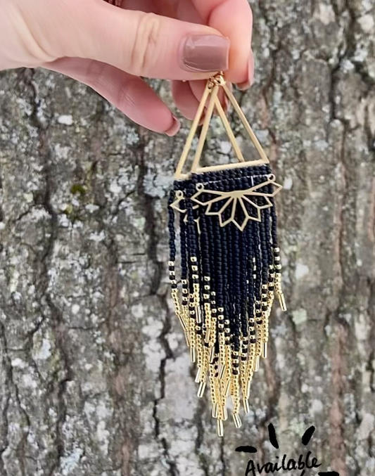 Black and Gold Beaded Earrings (Dancing Rose Design) OL