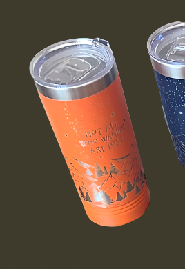 Orange/Silver etched 22 oz. tumbler w/ lid (Dapper Moose Design Co.) OL