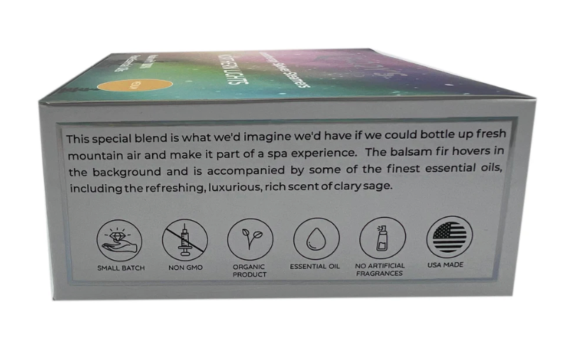 This special blend is what we’d imagine we’d have if we could bottle up fresh mountain air and make it part of a spa experience. The Balsam Fir hovers in the background and is accompanied by some of the finest Essential Oils, including the refreshing, luxurious, rich scent of Clary Sage. The combination in Northern Lights creates a fresh, invigorating, and soothing spa experience.