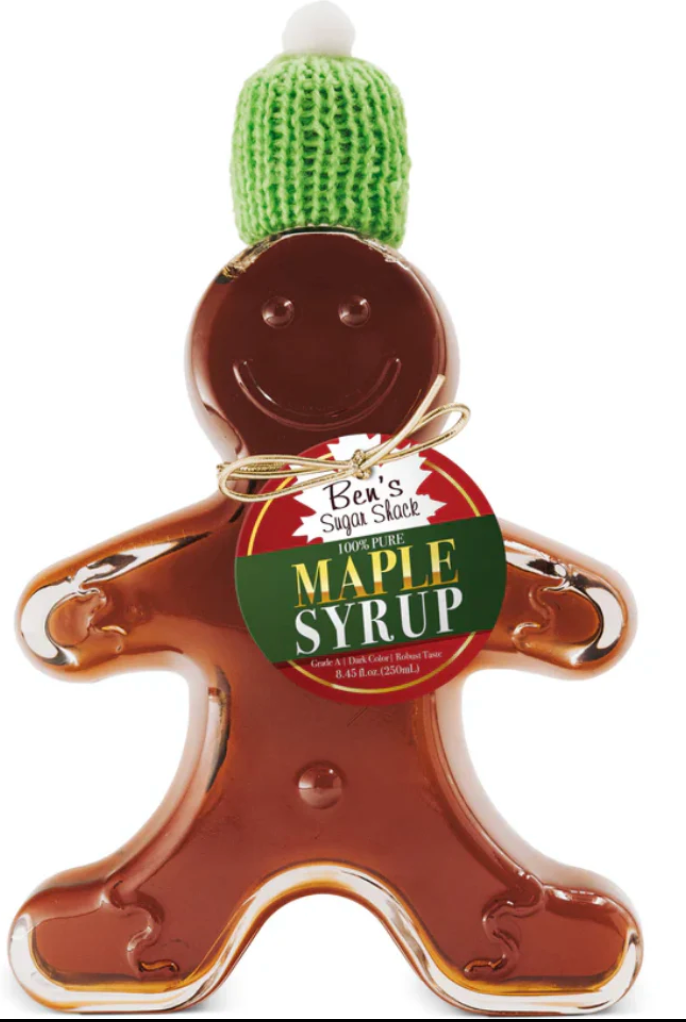 NH Pure Maple Syrup 8.45 oz. Gingerbread Person glass bottle (Ben's Maple) OL