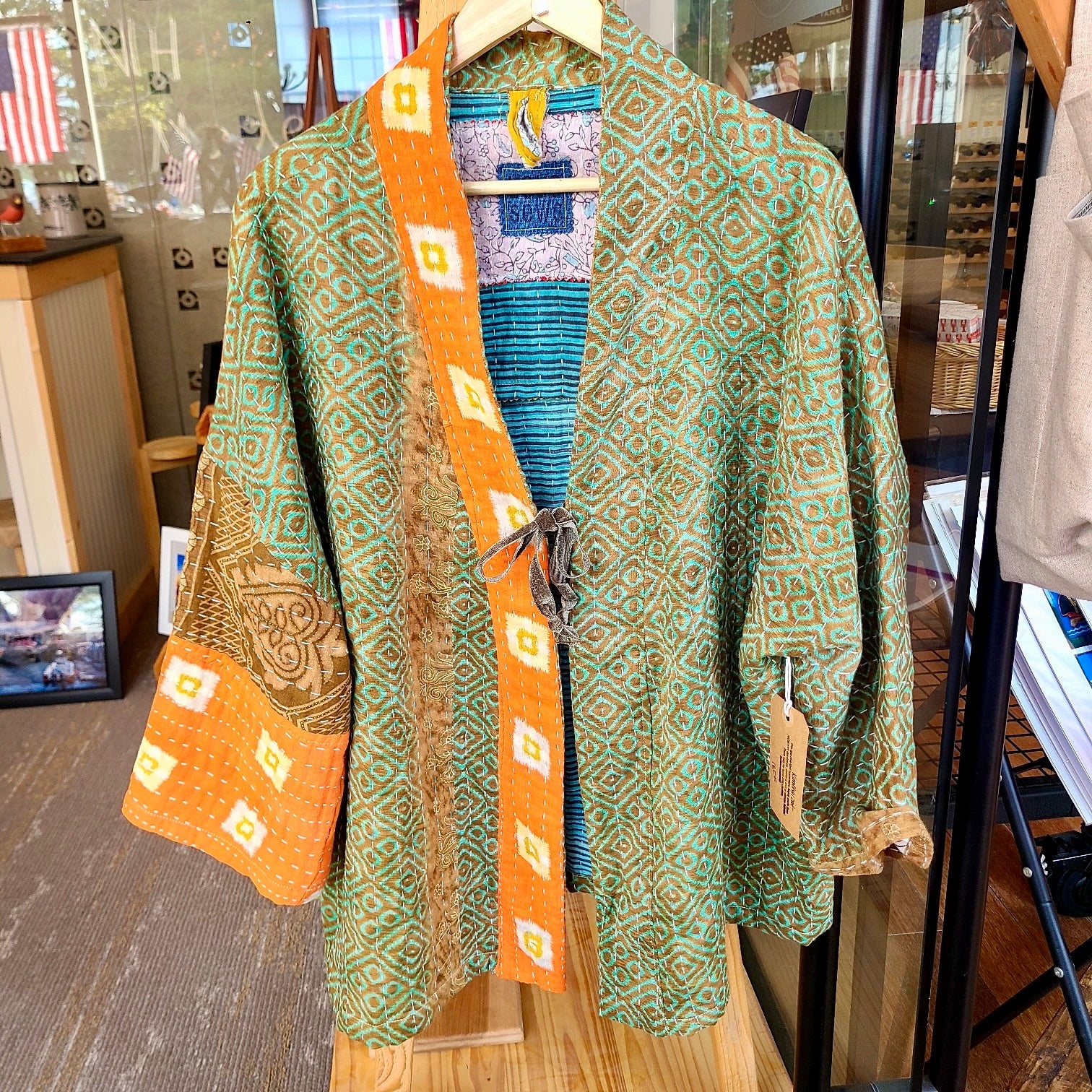Exquisite one of a kind Kantha Coat stitched from repurposed saris from our NH Made Textile Artisan, Hillside Studio.