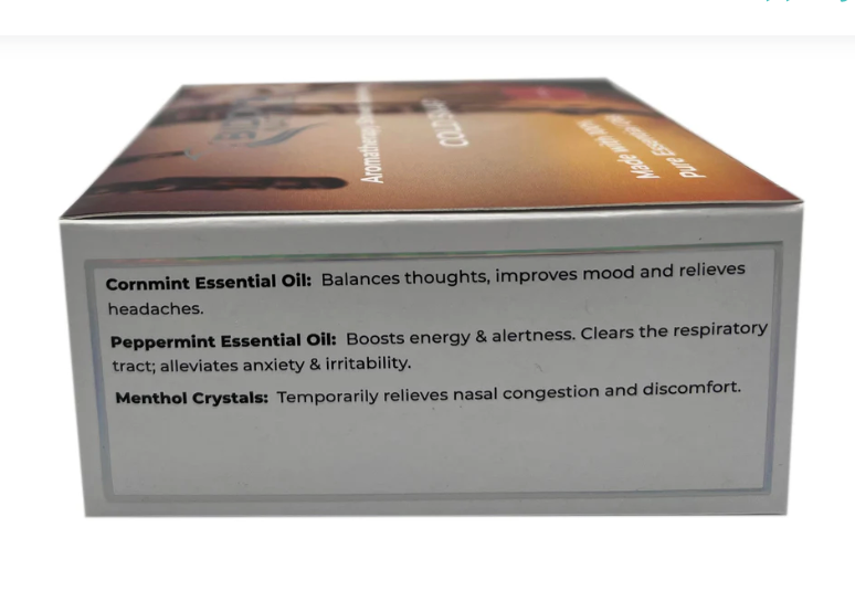 Menthol Crystals: Temporarily relieves nasal congestion and discomfort.