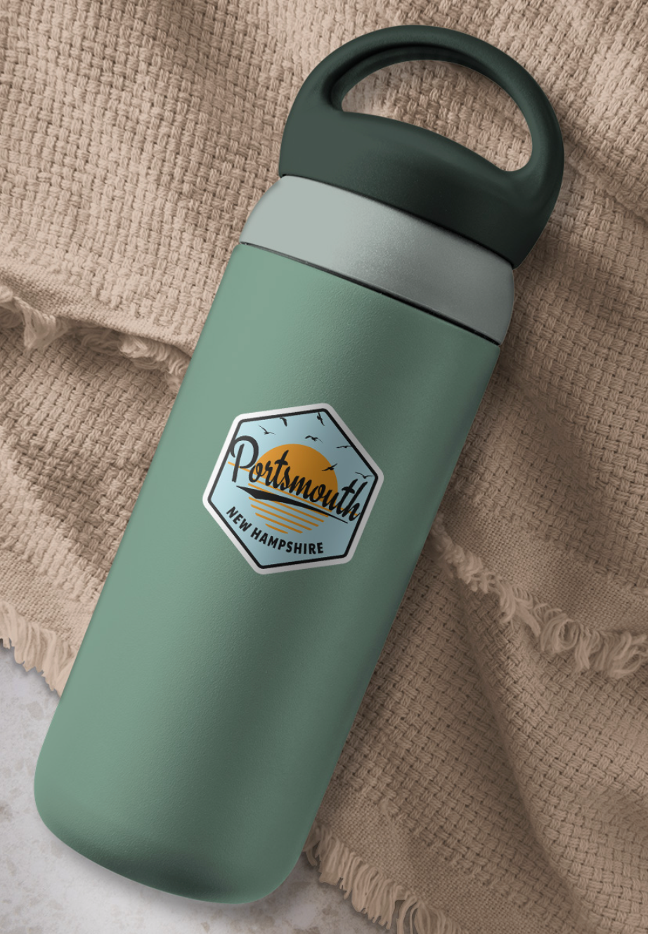 Get a glimpse of quaint Portsmouth, NH with this Ocean Sunset vinyl mini sticker. Let the retro vibes take you back to simpler times as you imagine watching the sun set over the ocean. Perfect for adding a touch of whimsy to your belongings. (Pun intended.)