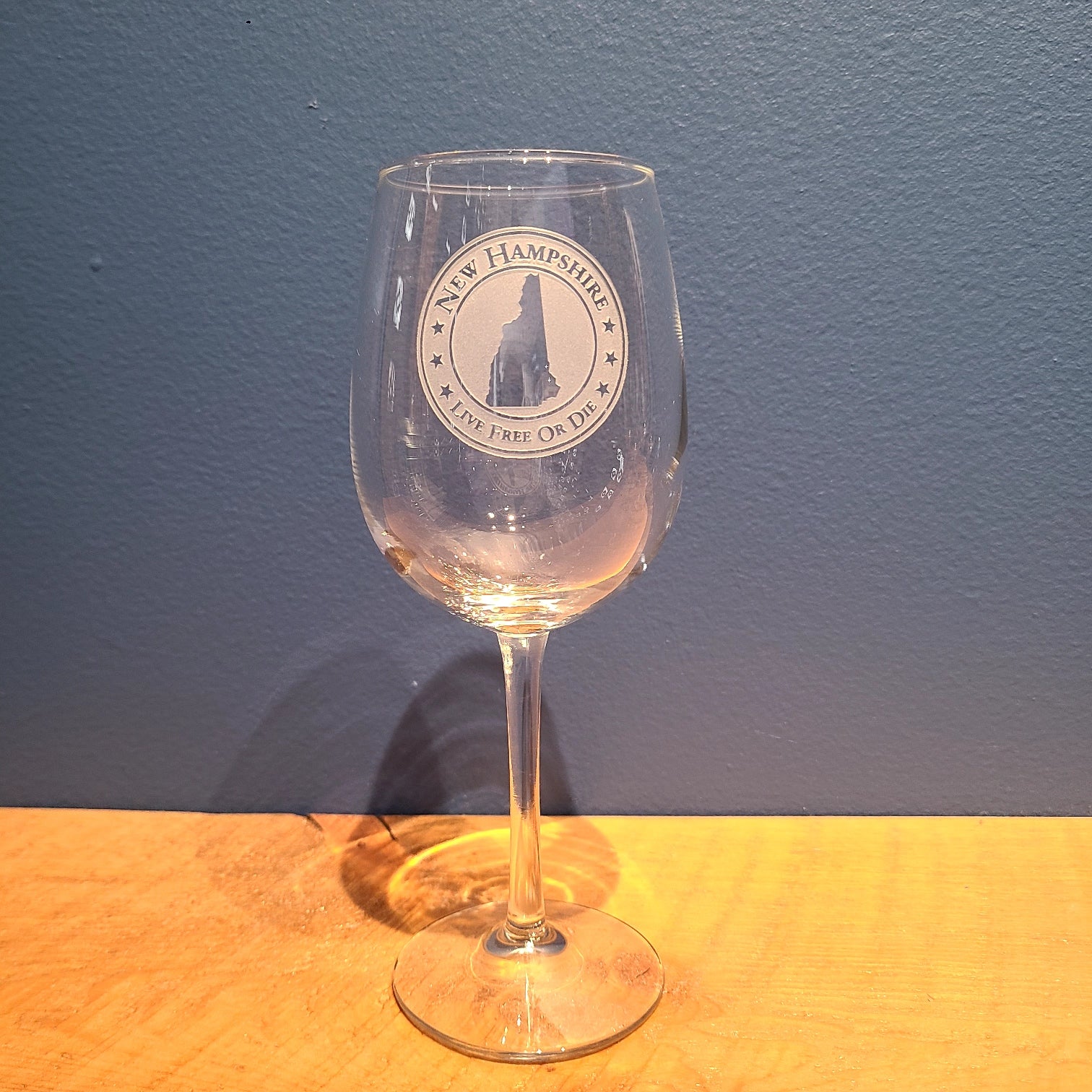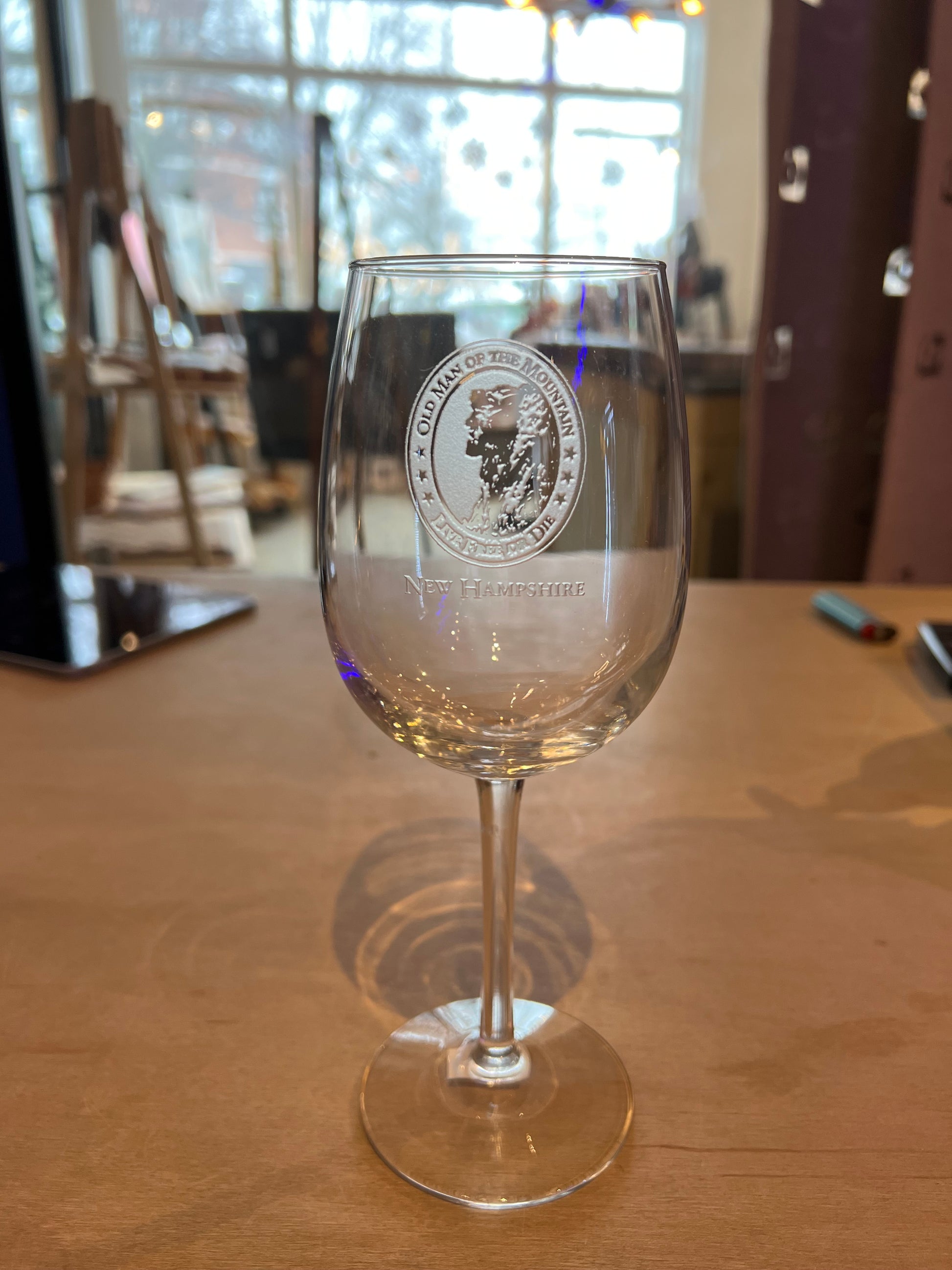 This 16 & 12 oz. stemmed crystal wine glass features delicate New Hampshire etchings. Its refined design enhances the elegance to enjoy your favorite wines while celebrating New Hampshire’s distinctive charm.