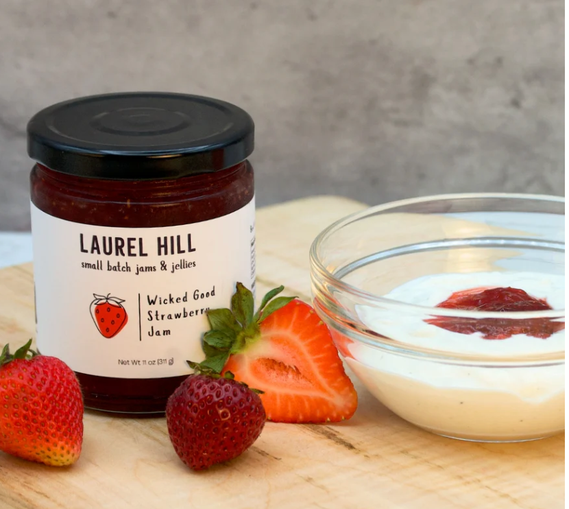 CUSTOMER FAVORITE!! Laurel Hill's Strawberry Jam was Top Pick of the five Strawberry Jams tasted as reported by NH Magazine. Made from local fruit, these strawberries contain Vitamin C. The jam has large and small chunks of fruit and has a sweet, fresh taste, and is part of the "Wicked Good" fruit jam collection.